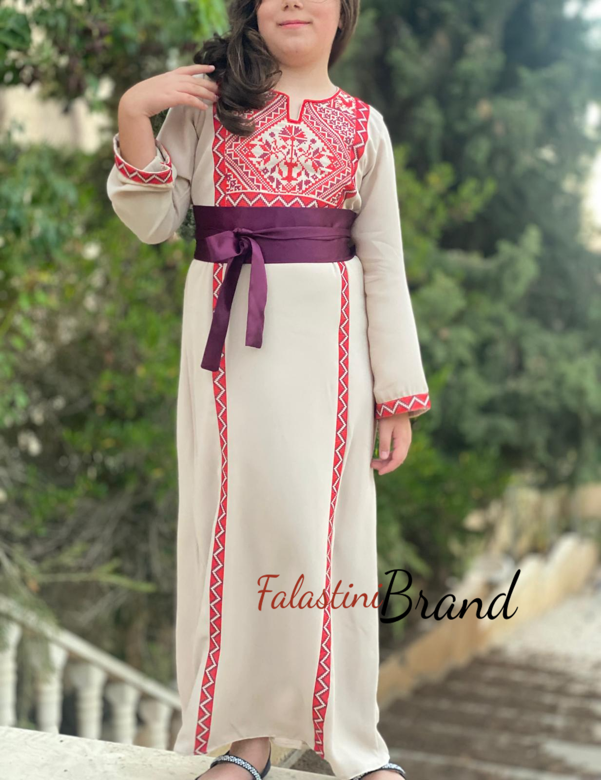 Little Girls Elegant Stylish Beige Thob With Satin Belt