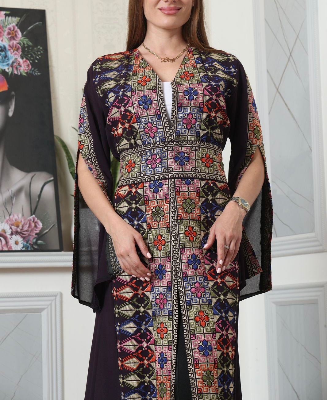 Lightweight chiffon open front Abaya Caftan with amazing embroidery art