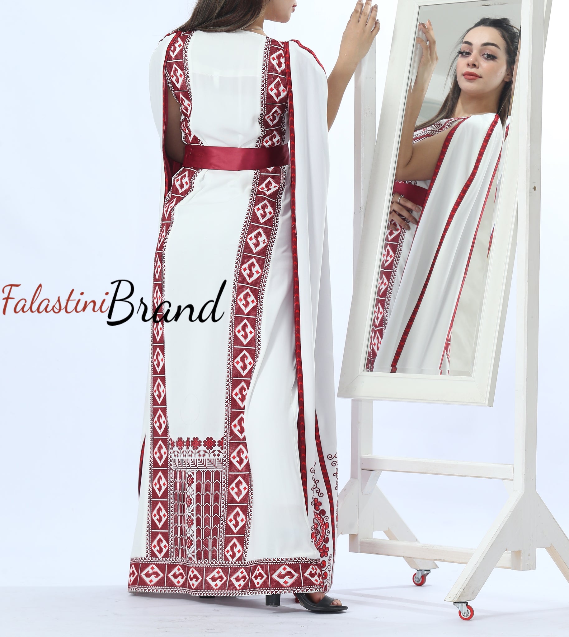 Stunning white and burgundy Palestinian dress