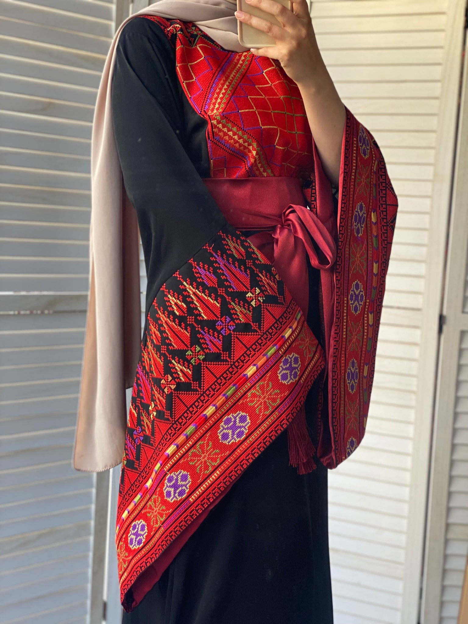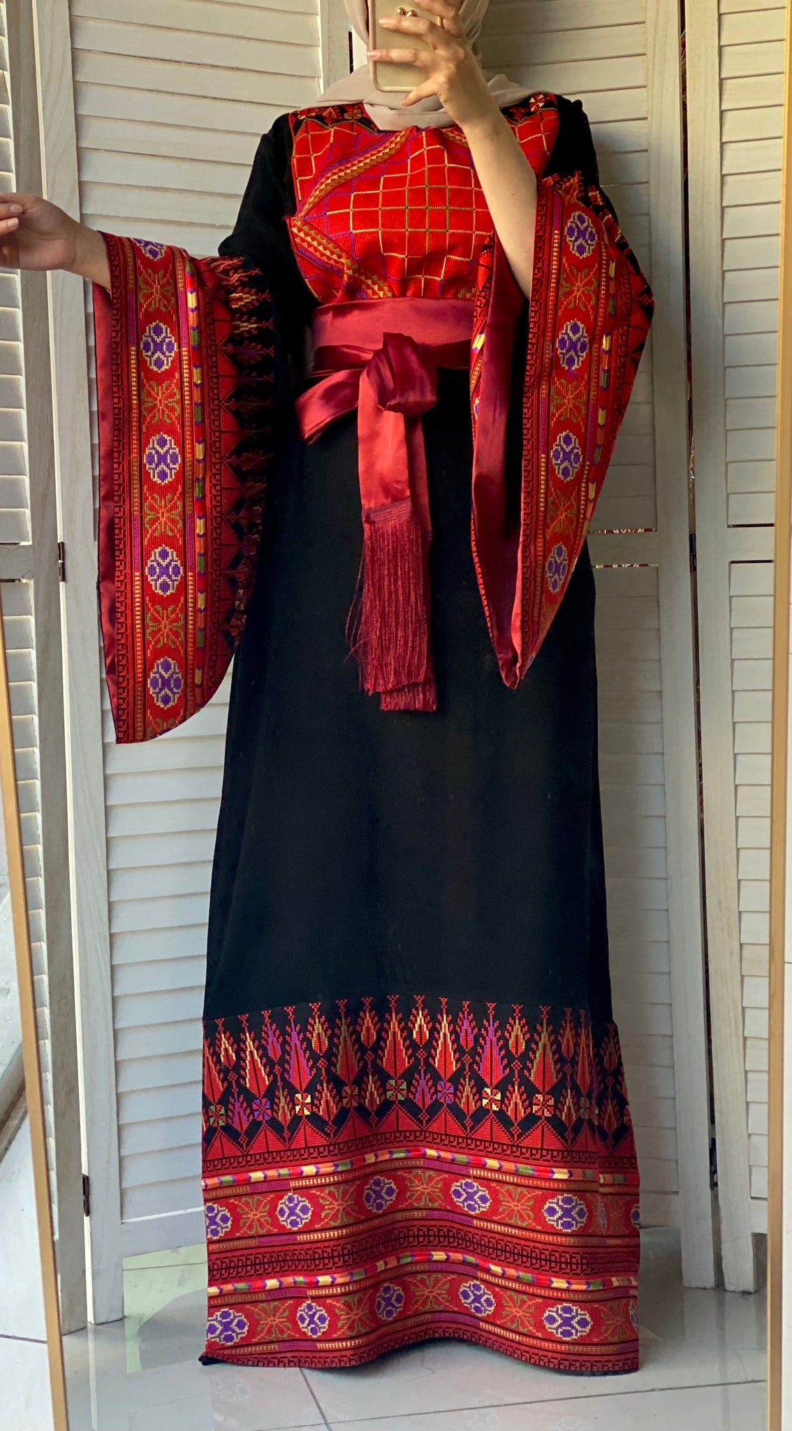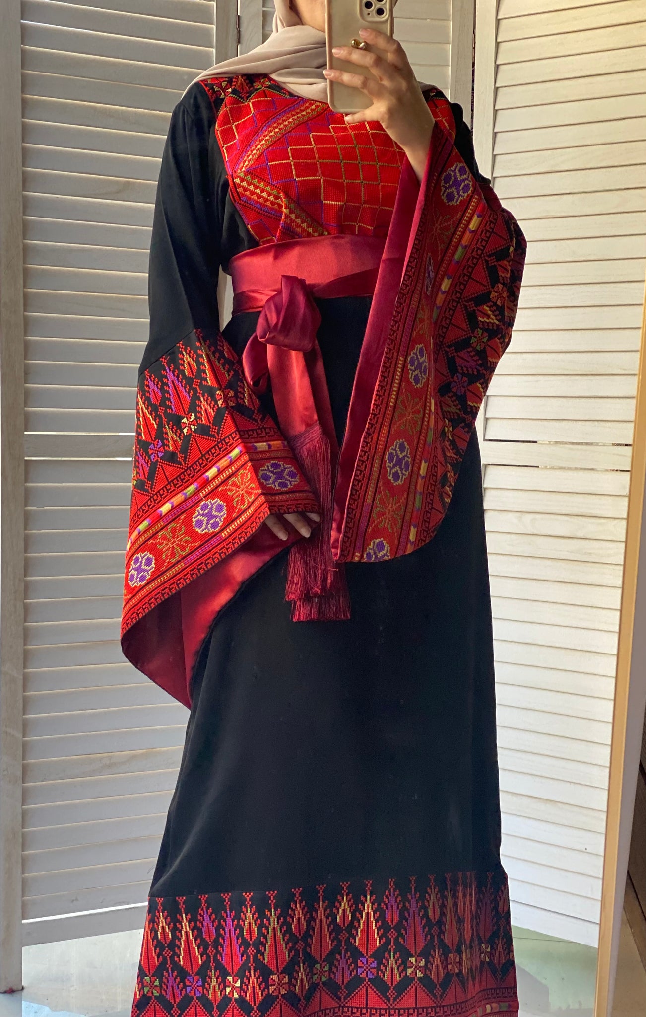Very Unique Radan Sleeves Black and Red Thobe with Dense Embroidery and Satin Details
