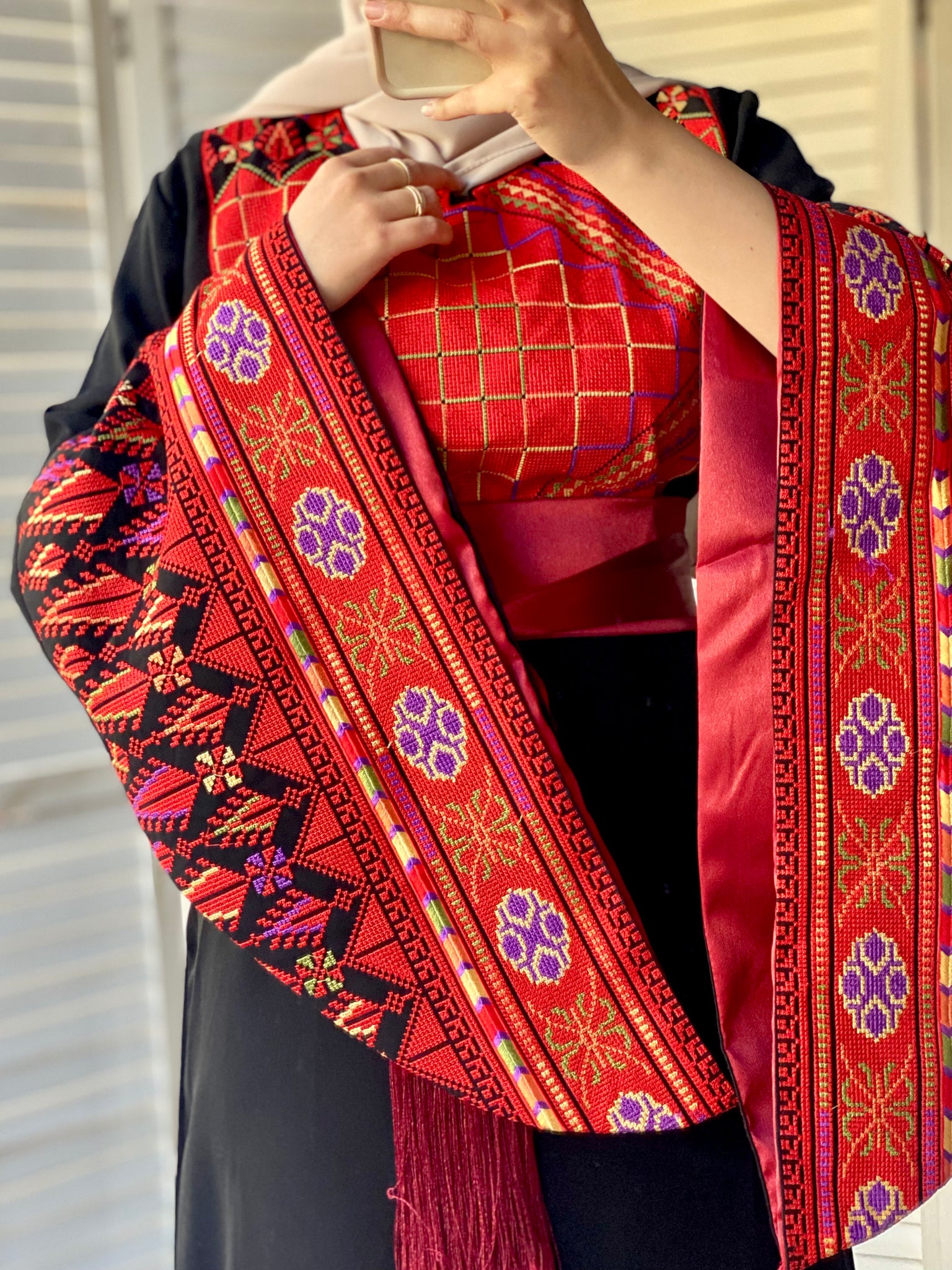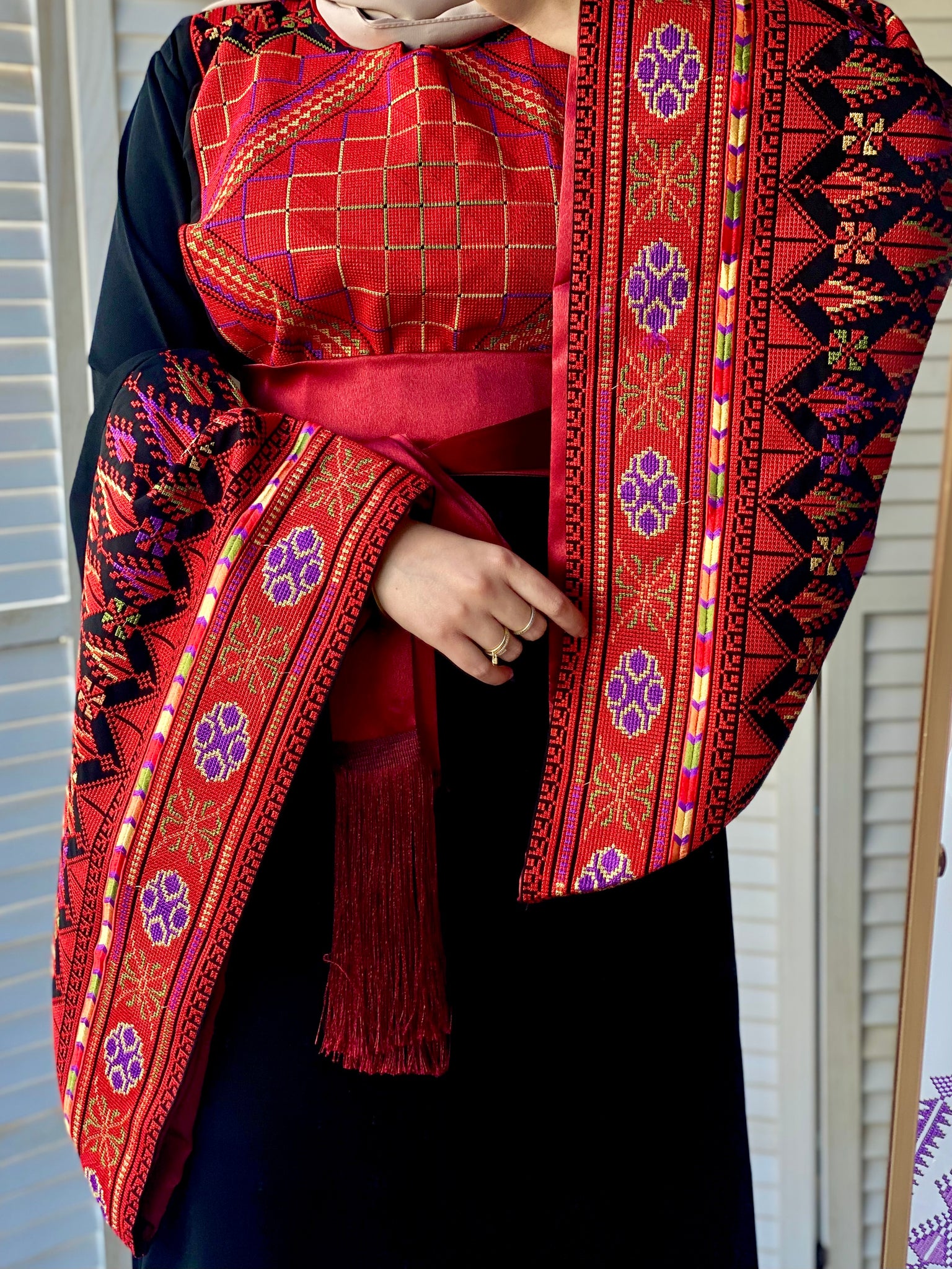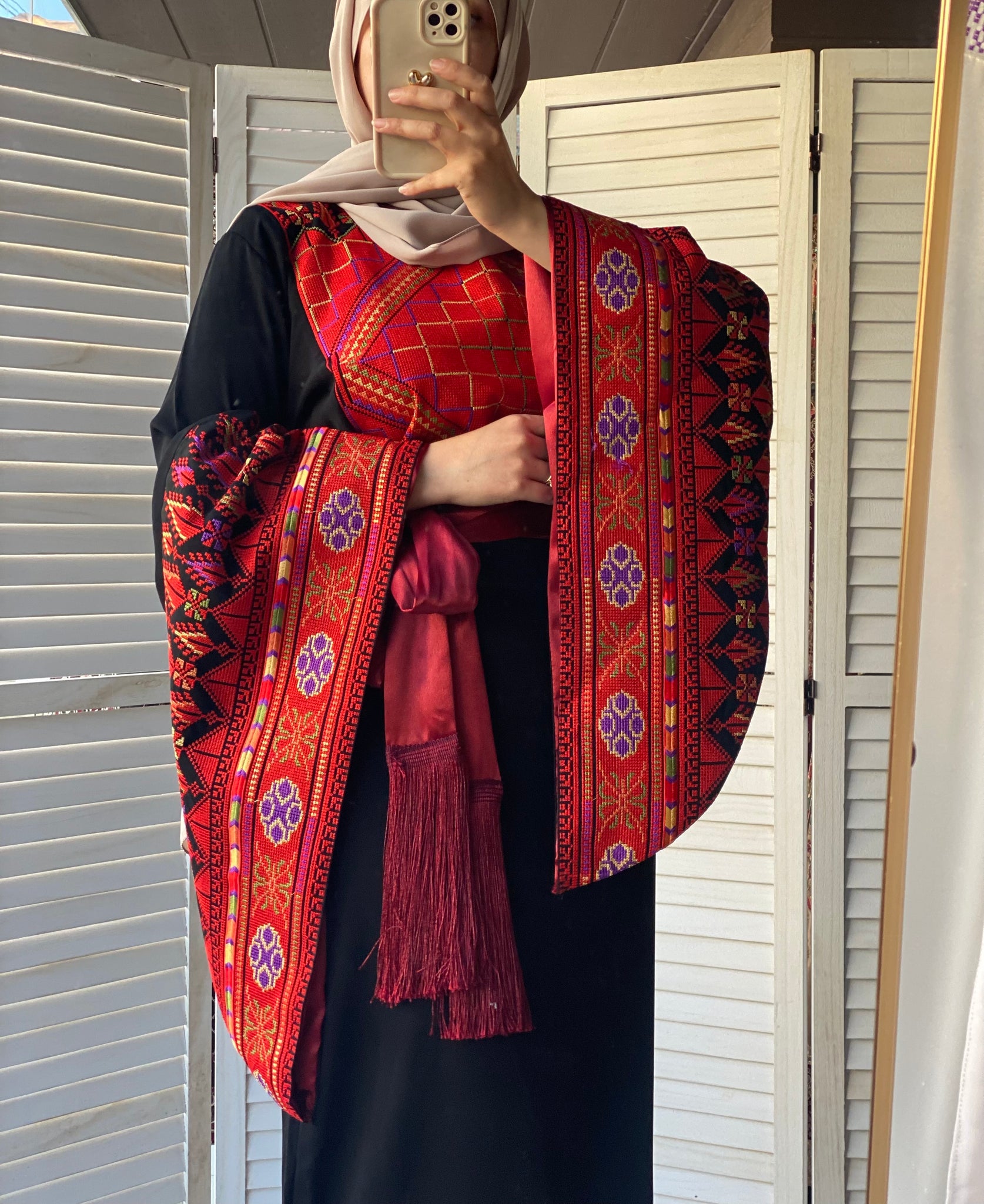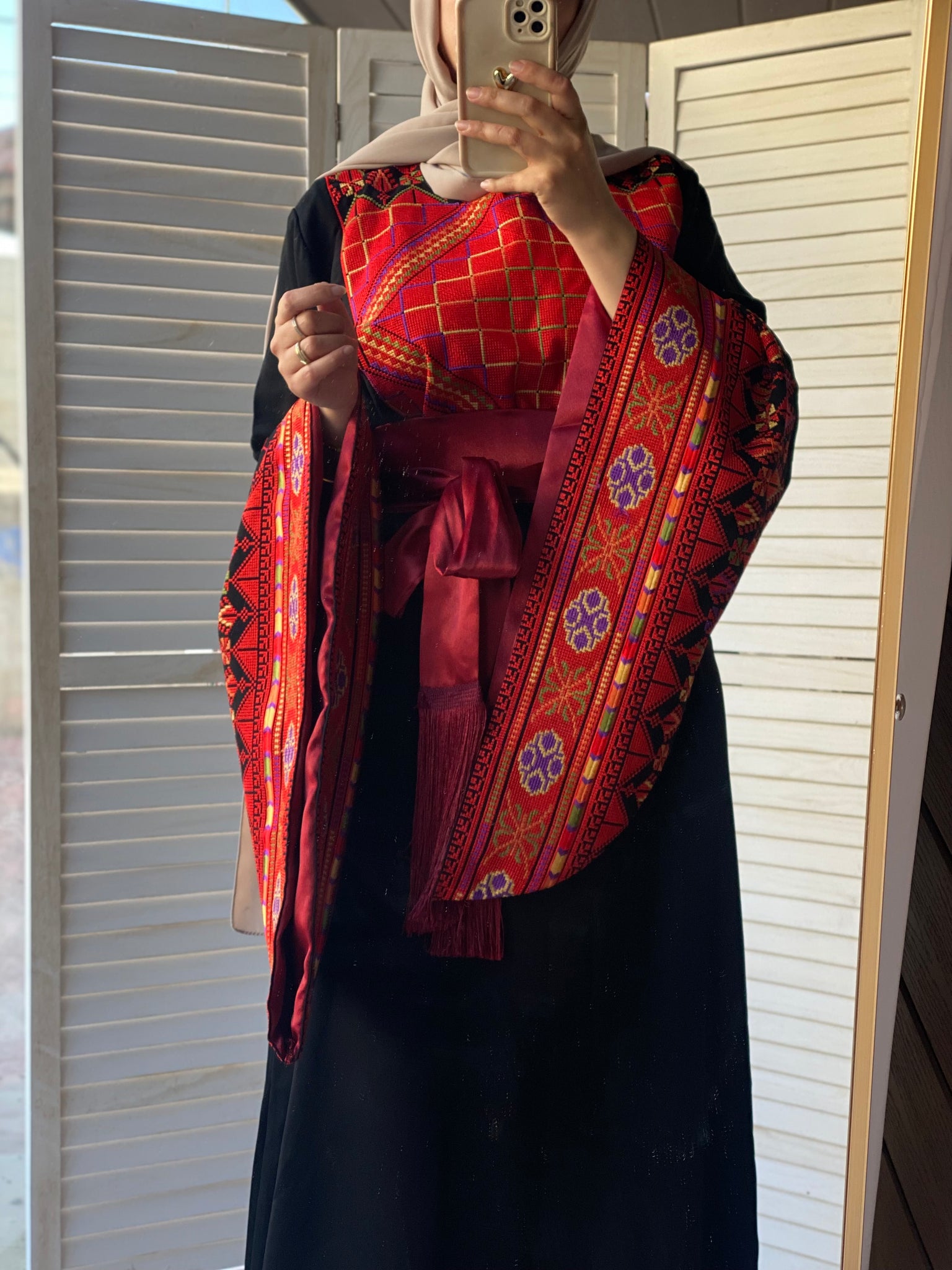 Very Unique Radan Sleeves Black and Red Thobe with Dense Embroidery and Satin Details