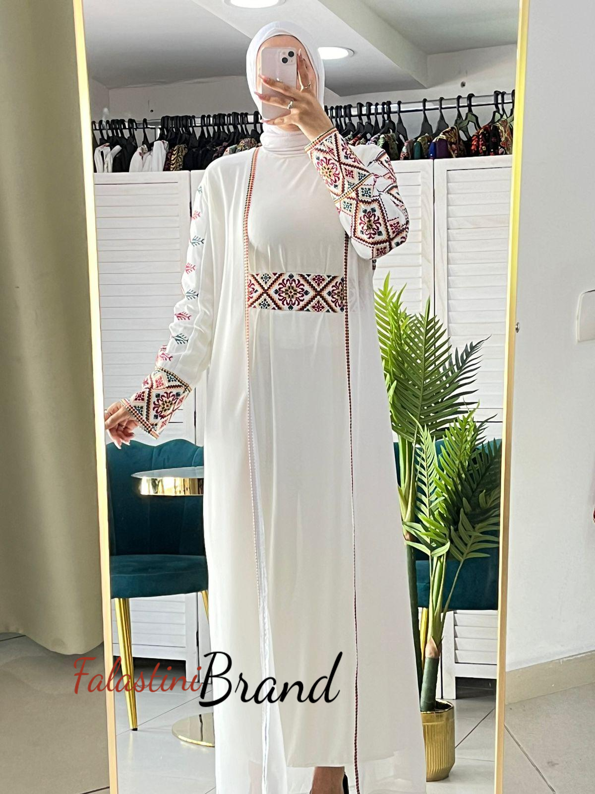 Lightweight georgette open front Abaya Caftan with amazing embroidery art